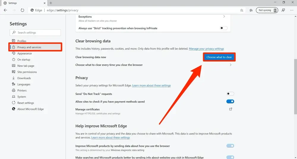 - Stuknij w Wyczyść dane przeglądania a następnie przejdź do Pliki cookie i inne dane witryn i Wyczyść dane.
